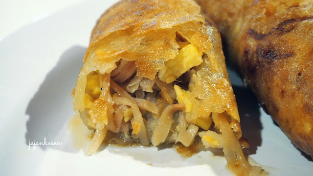 Ketika lumpia ini dibelah isinya yang melimpah langsung berhamburan keluar dan kulit lumpianya ini crispy tidak terlalu tebal sehingga mudah untuk dibelah.