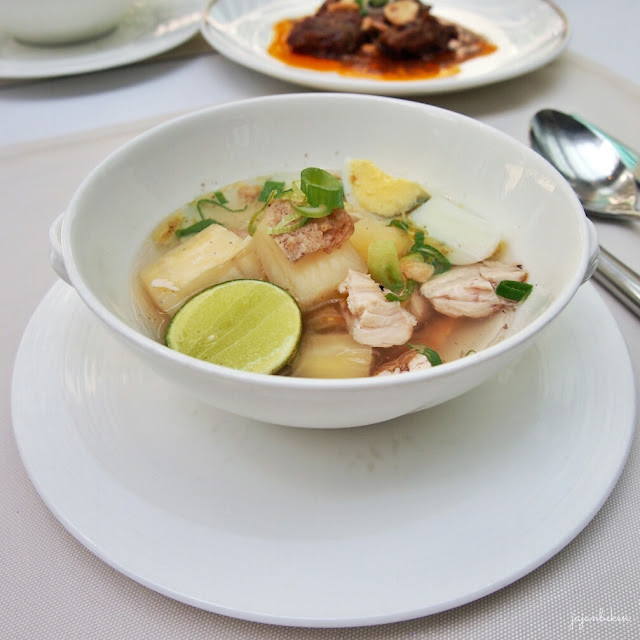 Bagaimana dengan rasanya? Ternyata enak banget! Kuahnya bening dan segar terasa sekali rempah dan kaldunya. Singkongnya empuk banget dan serasi sekali berpadu dengan potongan ayamnya.