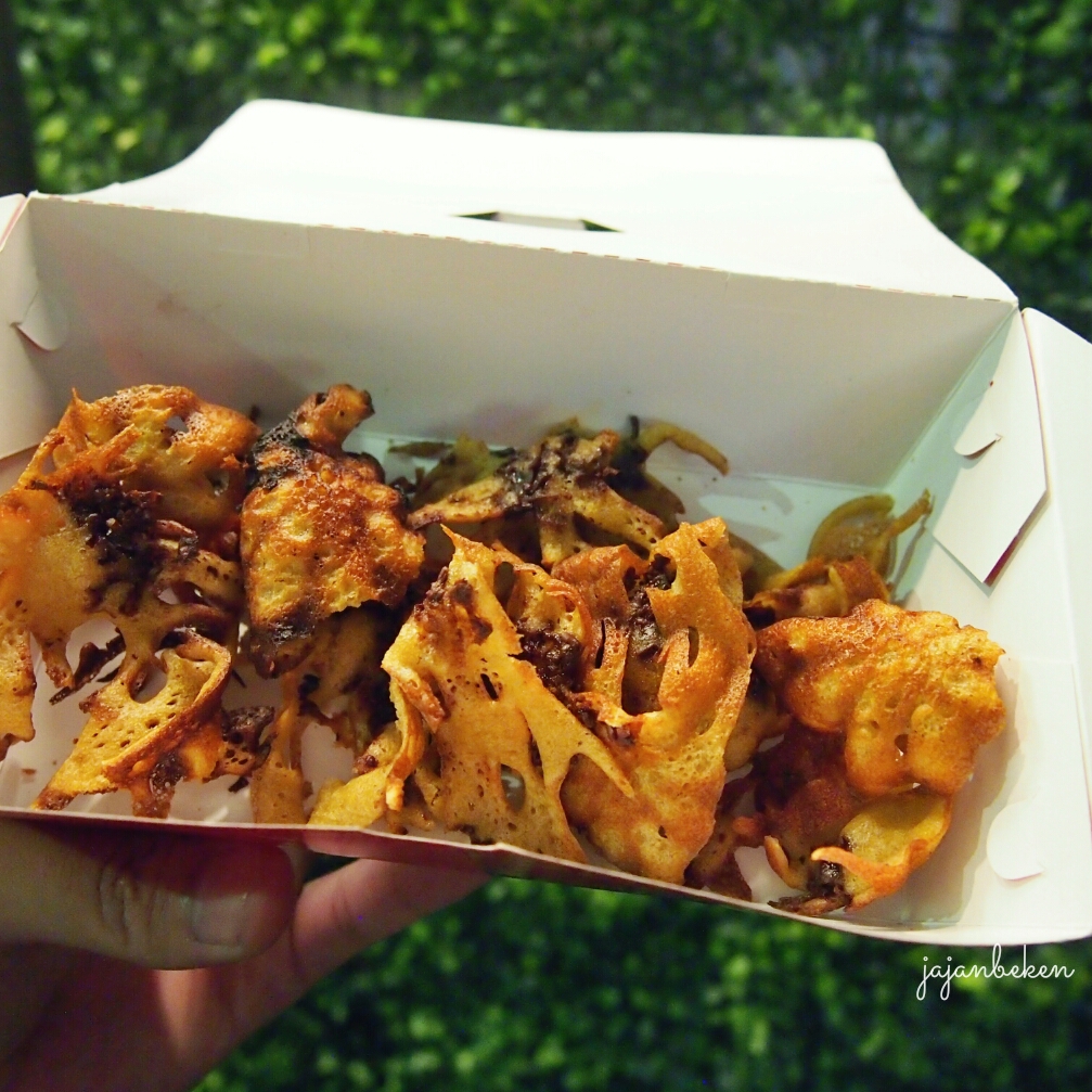 Well, kue laba-laba ini memang beda dengan yang dijual di pinggir jalan karena mereka pakai flavor kopi di adonannya, dan teksturnya lebih crunchy karena lebih tipis. Kue laba-laba disini enak tapi bukan favorit saya. Next time kalau bertemu dengan “we kue” lagi saya mau coba kue cubit setengah matangnya.
