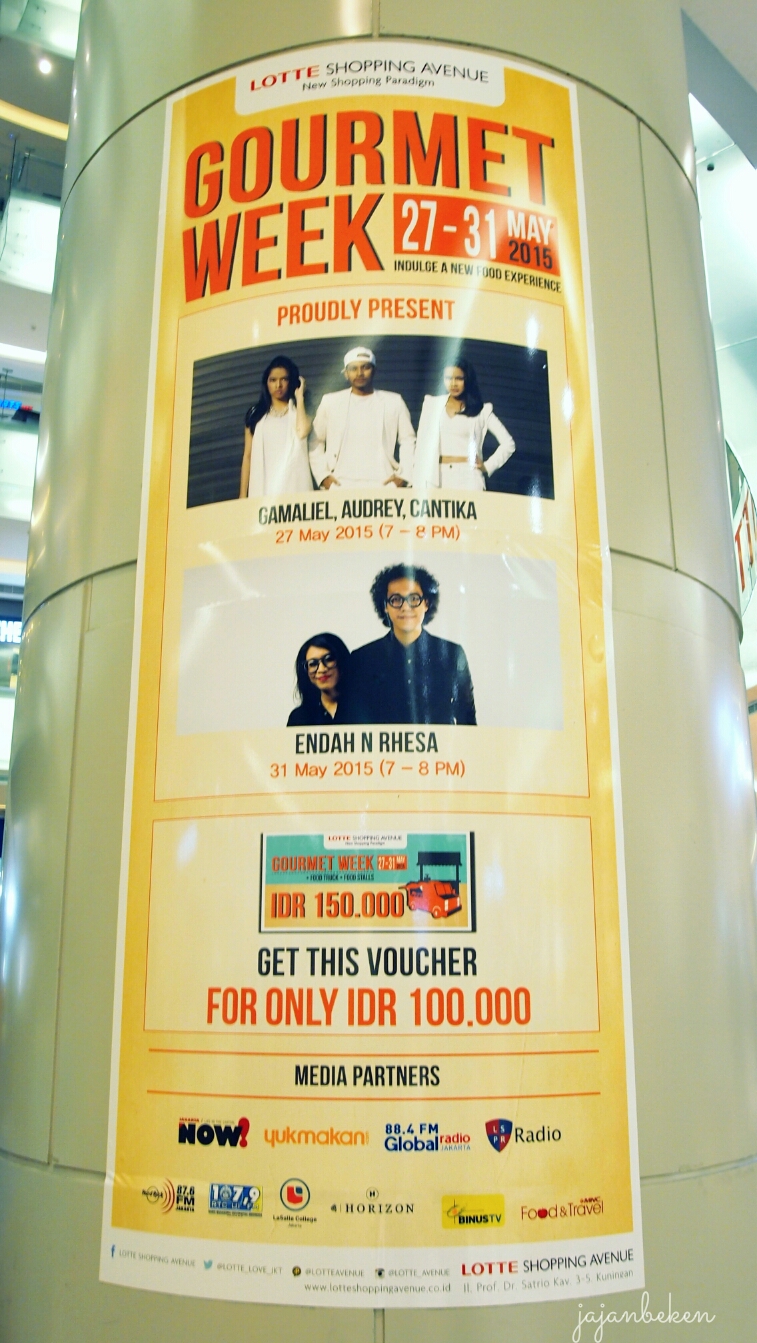 Hola sobat jajan! Kali ini saya akan ajak kalian untuk keliling di food bazaar yang ada di Lotte Shopping Avenue. Nama bazaarnya adalah “Gourmet Week” dan digelar di event atrium lantai dasar. Seperti apa suasana bazaarnya? yuk kita lihat.