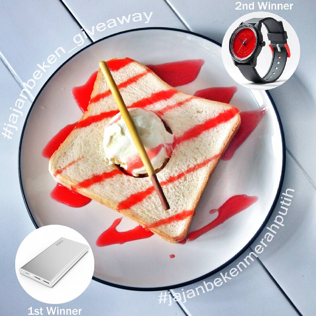 5. Mention ke 5 orang teman kamu untuk ikutan. 6. Cantumkan hashtag #jajanbeken#jajanbeken_giveaway dan #jajanbekenmerahputih 7. No retagging foto lama dan kamu boleh upload lebih dari 1 foto. 8. Foto yang dilombakan harus foto hasil karya sendiri dan bukan plagiat (pemenang akan diminta untuk mengirimkan foto asli via email untuk verifikasi). 9. Pemenang tidak ditentukan berdasarkan dari like terbanyak. 10. Pastikan akun kamu tidak di-private. Periode challenge akan berlangsung dari 7 – 21 Agustus 2015. Pemenang akan diumumkan lewat akun ig @adieguno tanggal 24 Agustus 2015.